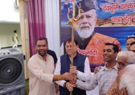 in News, Politics, Research, राजनीति, राज्य कैलाश मानसरोवर यात्रियों को रवाना करने पहुंचे यह मुख्यमंत्री को प्रजापति समाज ने भेंट किया त्रिशूल धर्मशाला निर्माण की उठाई मांग-