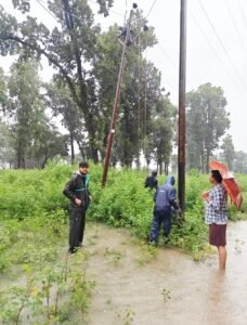 कठिन हालात के बावजूद बिजली विभाग की टीम मौके पर डटी हुई है। तेज बारिश और फिसलन भरी जमीन के बीच एसडीओ के नेतृत्व में विभागीय कर्मचारी दिन-रात मेहनत कर बिजली आपूर्ति बहाल करने में जुटे हैं।